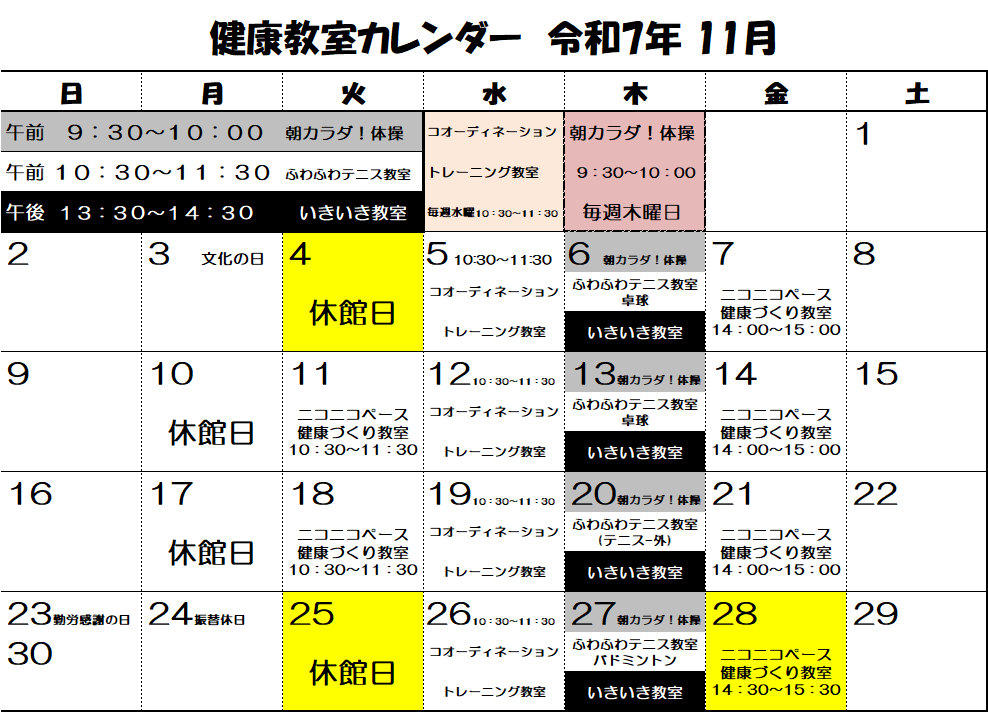 | 23 | 24 | 25 休館日 | 26 | 27 | 28 | 29 |