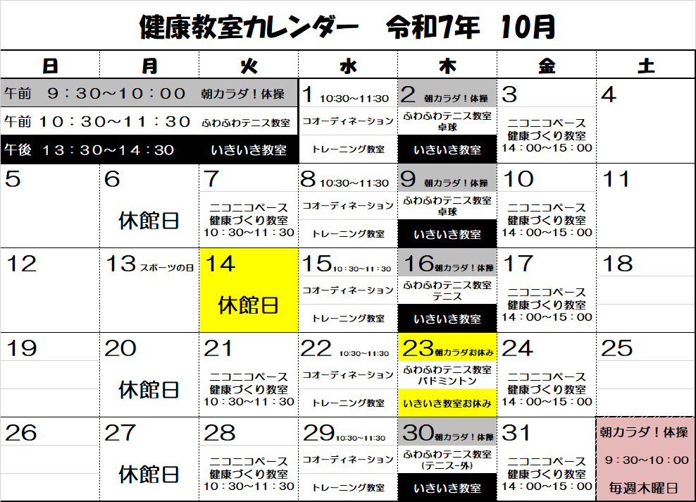 | 26 | 27 休館日 | 28 | 29 | 30 | 31 | |